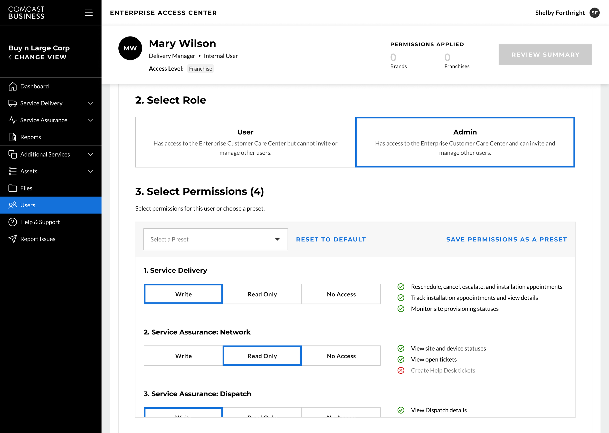 Existing Comcast Business Enterprise customers had to handle all self-service management tasks at the corporate level because of the security risks and communications issues that would be caused by giving franchise owners access to the enterprise self-service portal. This created inefficiencies in cost, time, and resourcing.