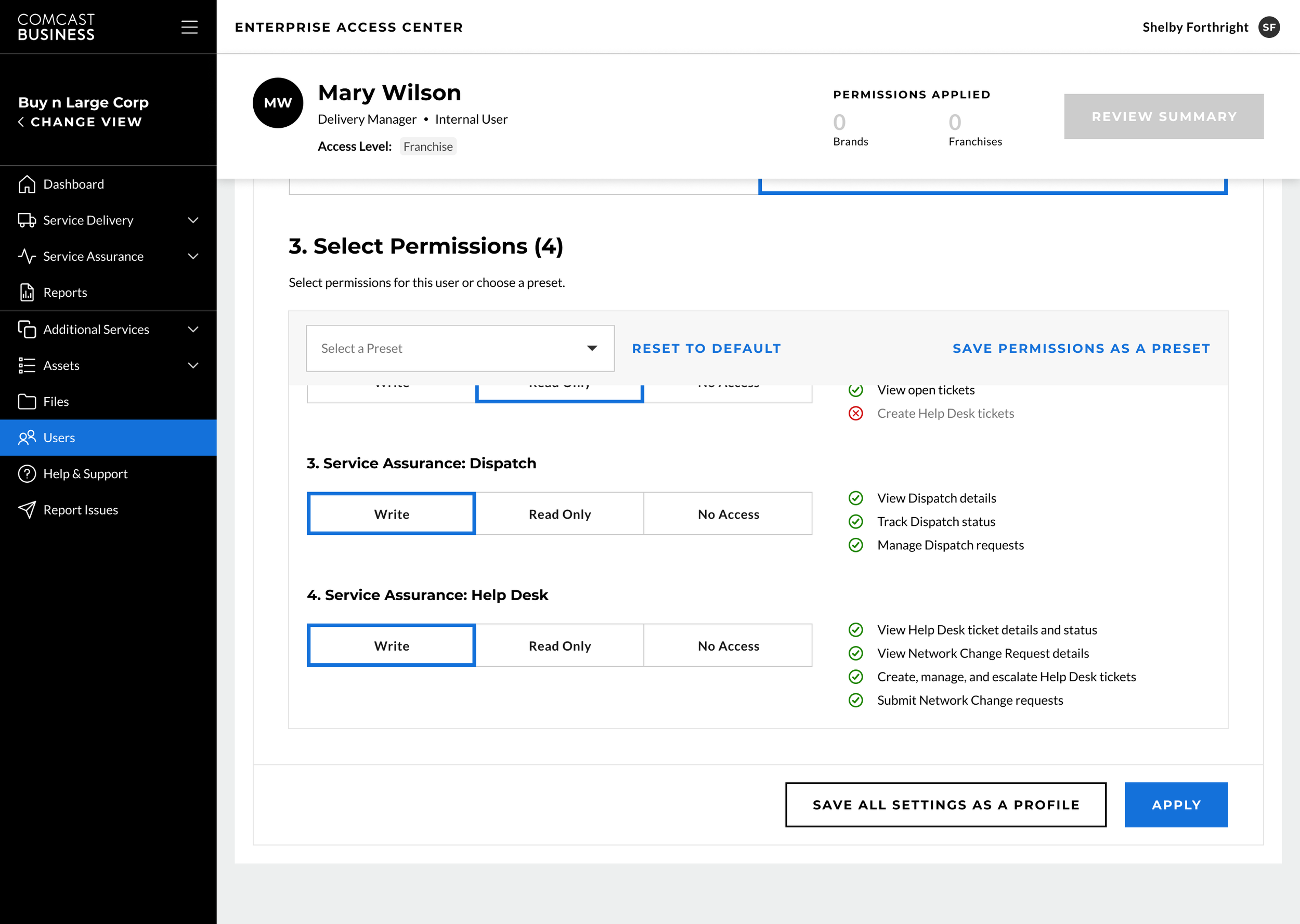 In direct response to customer requests, Comcast Business has developed a hierarchical framework which empowers corporate-level users to set rules and permissions for franchise owners through a controlled set of data, giving them the freedom to access quick and efficient solutions within their own tier and co-branded sites. The exclusive capability extends beyond managed help desk tickets and problem solving to additional installations, services, and reporting tools, resulting in a streamlined workflow and expanded efficiency and productivity at all levels.