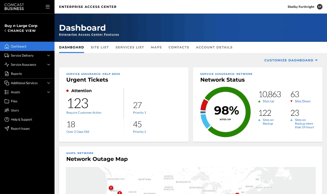 Comcast Business has increased satisfaction and productivity for their valued, enterprise-level customers at all levels to access service and equipment solutions while supporting oversight and control at the corporate level.