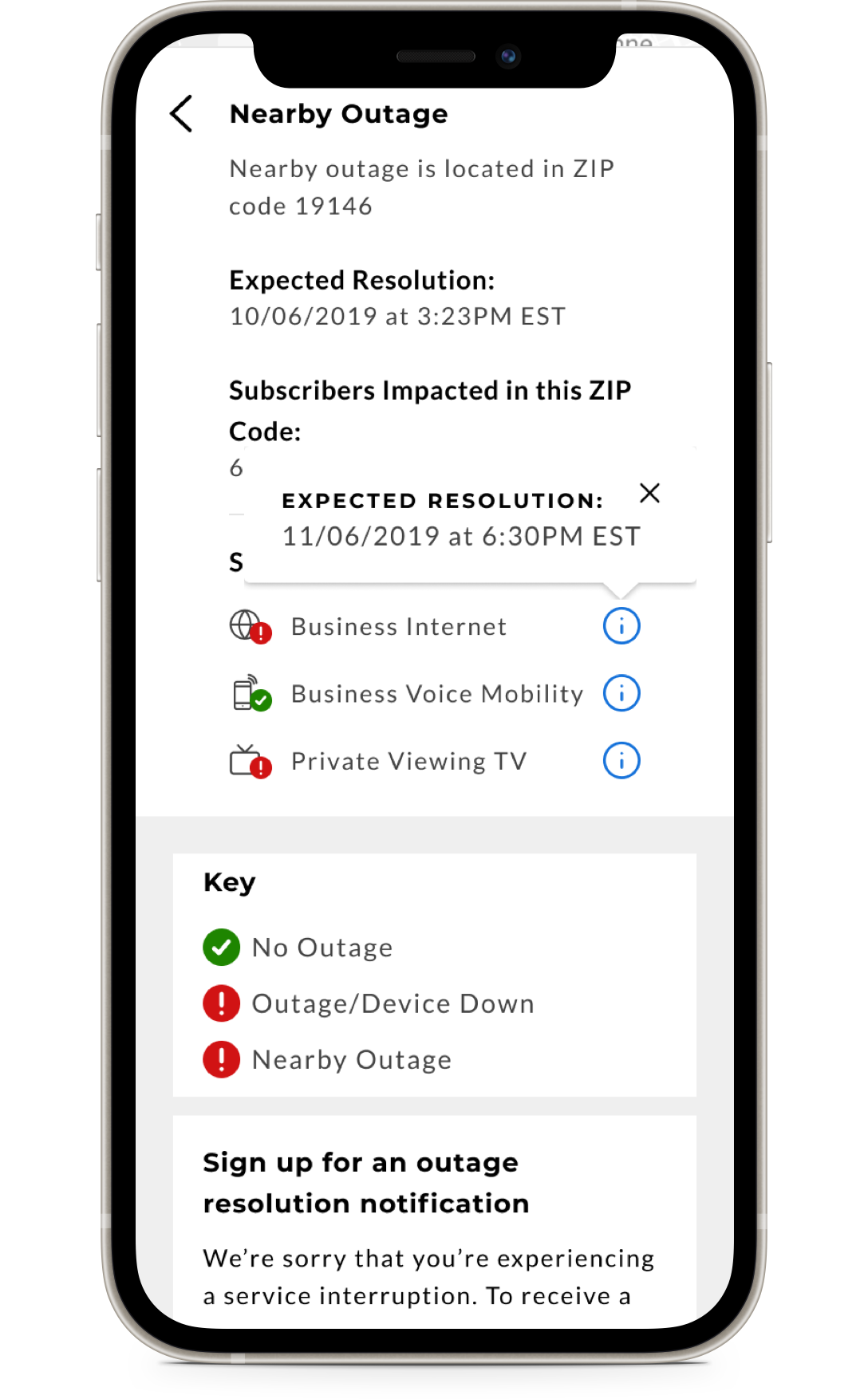 When service interruptions occurred, Comcast Business customers were not able to efficiently check their connectivity status online, which resulted in costly and time-consuming interactions with the Comcast call center, an experience that was out-of-step with today’s self-care needs and expectations.